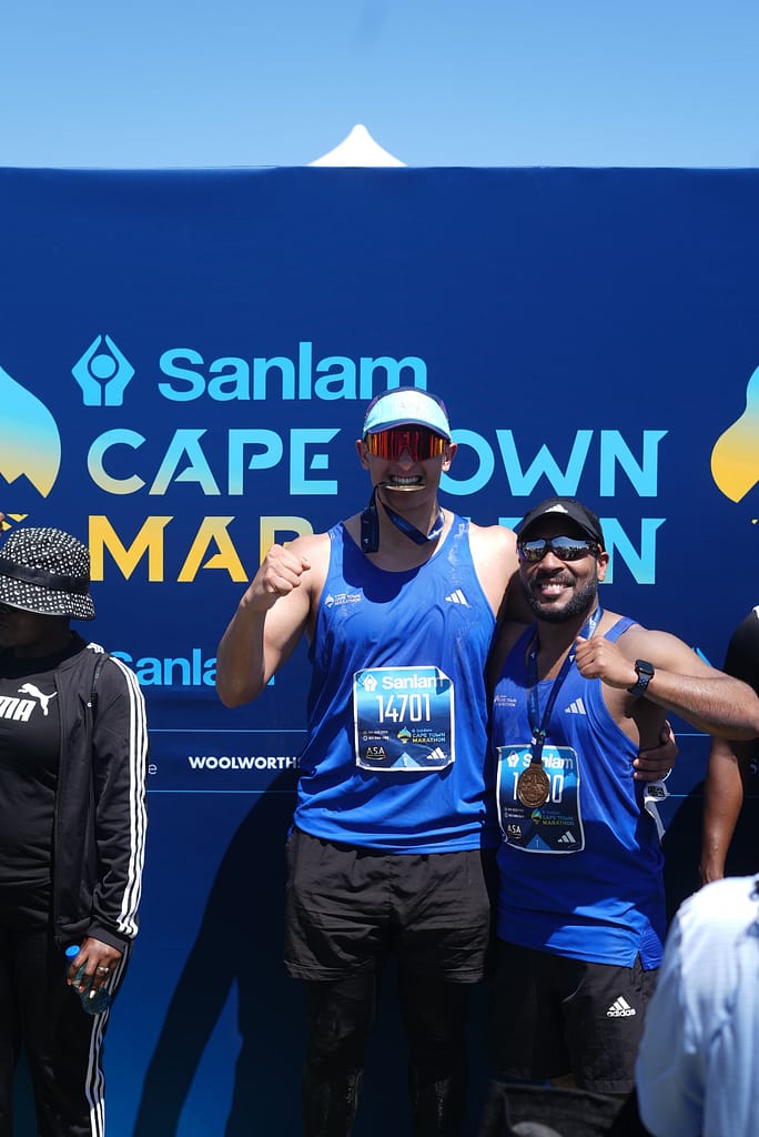 With speed now in the bag, Uthman set his sights on tackling distance. He first graduated to a ten-kilometer race and, before long, found himself at the start line of his first-ever half marathon. “Running is such a unique sport in terms of community,” says Uthman. “It’s very different from what I have experienced in other sports. Everyone is so welcoming and encouraging,” he adds. We think he means a little “peer pressure-ing” too, because with all this encouragement, Uthman quickly found himself signing up for his first-ever marathon: the Sanlam Cape Town Marathon. “I was also really inspired by watching other races, where I saw people of all shapes and sizes completing marathons. If they could do it, why couldn’t I?” he explains.