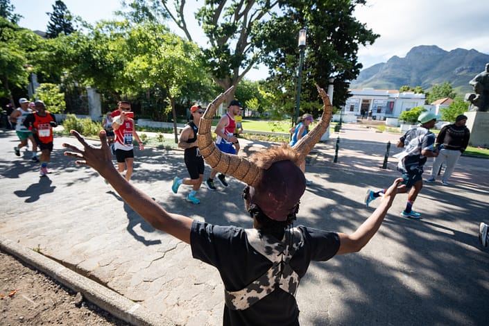 One of the most visually striking spots on the course, Rondebosch Common is a protected national monument that sits at the geographical and emotional heart of the race. Devil’s Peak forms a dramatic backdrop behind the runners as they loop around the Common, and it is one of the easier spots to reach if you are coming from the south, making it a great base to settle into for a while. Look up and you will spot Kites by Phil soaring above, while a charity lane below adds to the noise and energy. Multiple vantage points around the Common mean there is always a good spot to be found.
